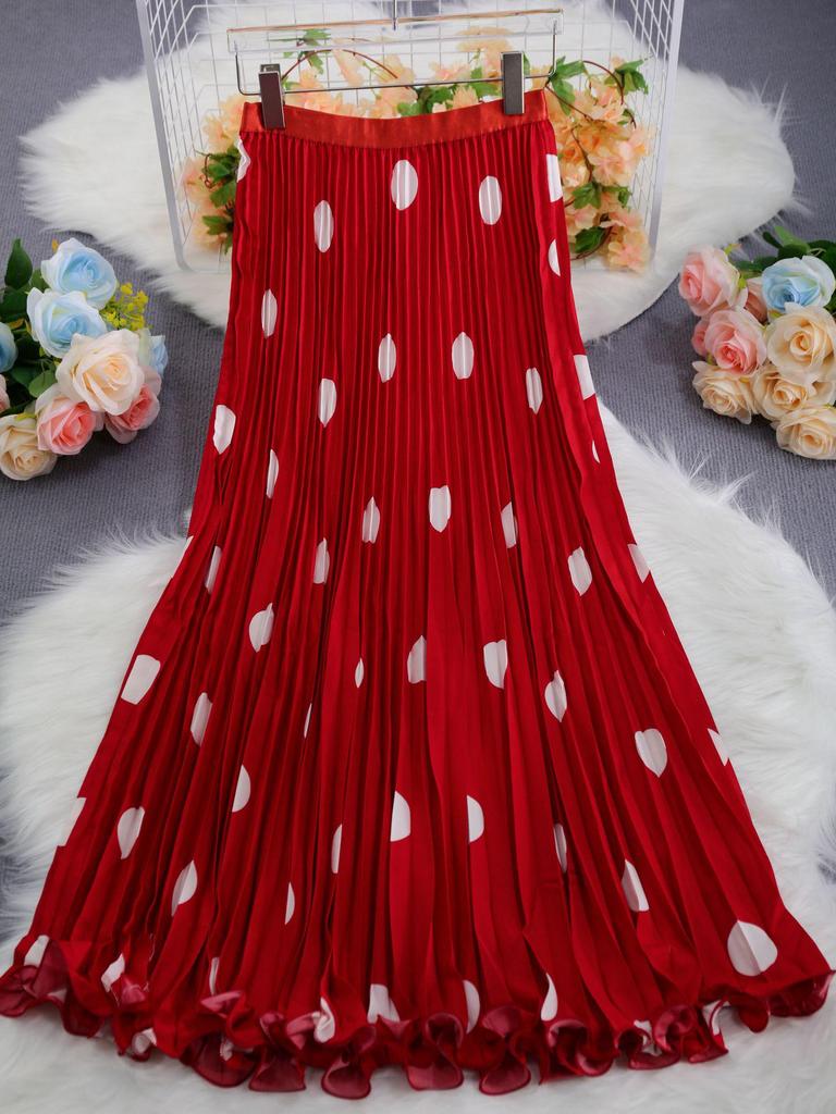 Šifonová plisovaná sukně v japonsko-korejském stylu: Pohodlná, Zeštíhlující, Vysoký Pas, Super Široký Spodní Lem, Dlouhá Ležérní Sukně