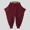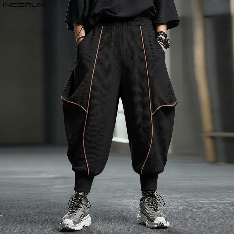 INCERUN Men Elastic Waist Stitching Casual Long Texture Drop-crotch Pants Trousers