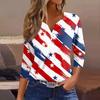 Women's T Shirt Independence Day Print Button 3/4 Sleeve Daily Weekend Fashion Basic V- Neck Regular Top
