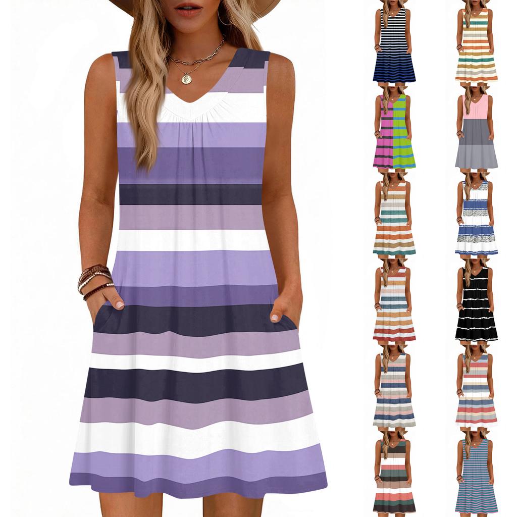 Dámské módní letní tílko bez rukávů s V-výstřihem, s kapsou, ležérní volné šaty