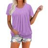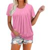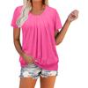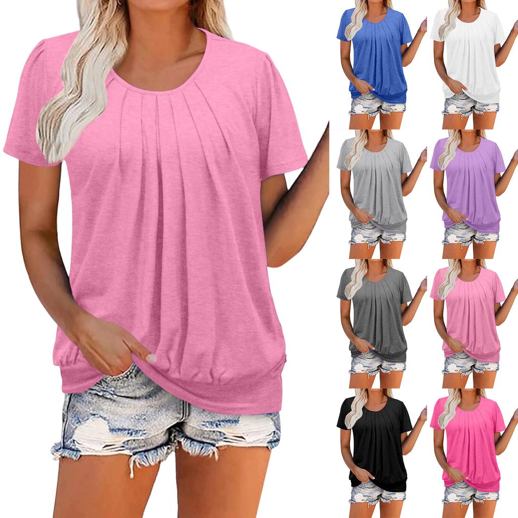 Dámské barevné kulatý výstřih pohodlné krátký rukáv univerzální volné ležérní tričko