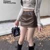 Elevate your autumn wardrobe with this chic, high-waisted A-line mini skirt, specially designed for a petite frame. Crafted from textured coffee-colored polyurethane leather, the skirt offers a trendy, hip-hugging fit that seamlessly combines comfort with fashion-forward style. Perfect for adding a touch of sophistication to any outfit, this versatile piece can be effortlessly dressed up or down for any occasion.