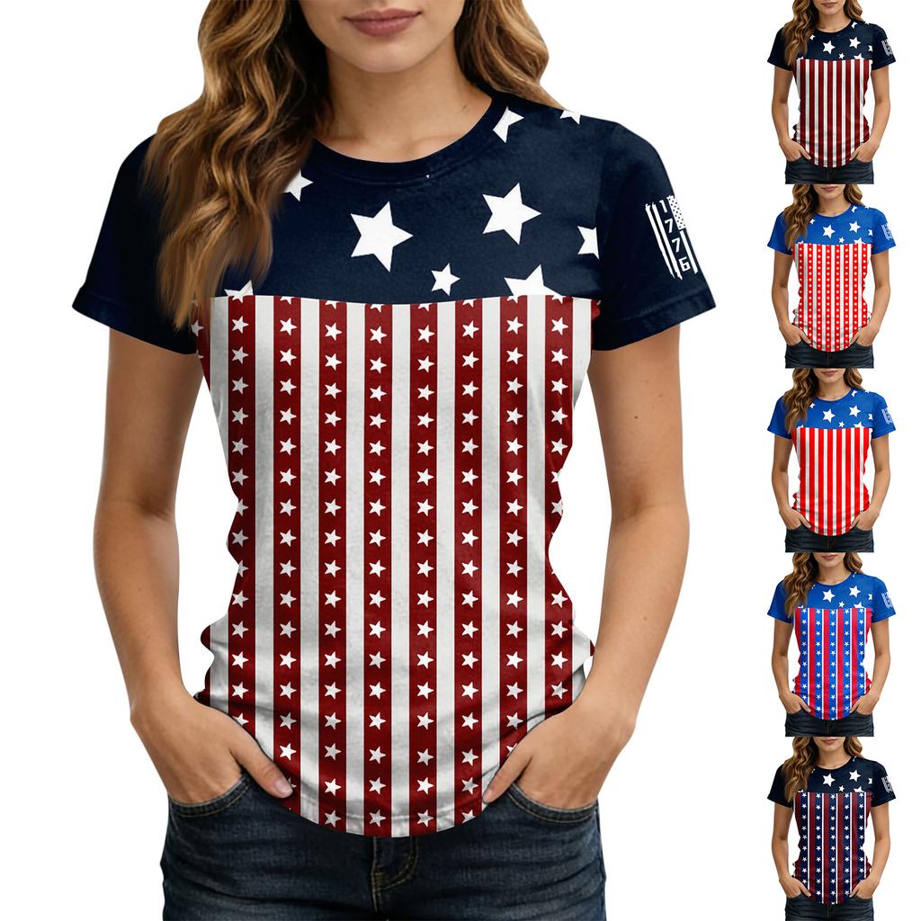 Women's Short-sleeved Top, Casual Slim Fit Women's Round Neck Short-sleeved Printed Shirt