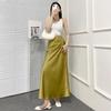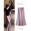Enhanced Autumn High-Waisted Slimming Midi Skirt for Women in Acetate Satin Fabric. Please view the product before ordering.