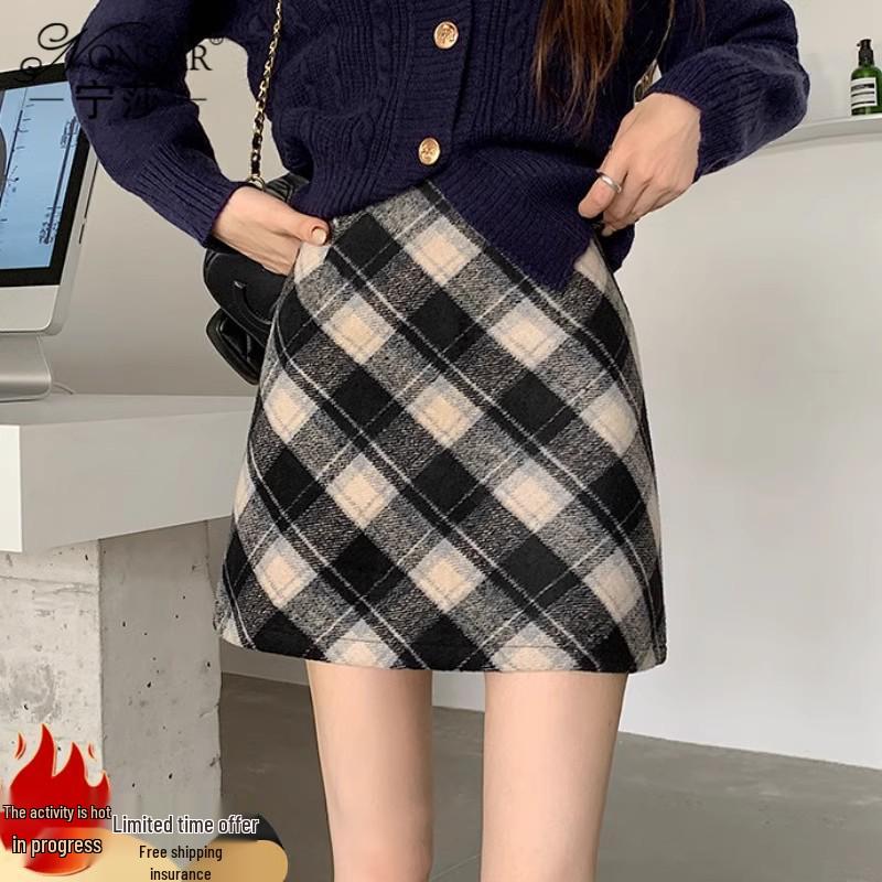 Plaid Woolen High-Waist A-Line Hip-Hugging Skirt - New Women's Collection for Early Autumn/Winter 2026