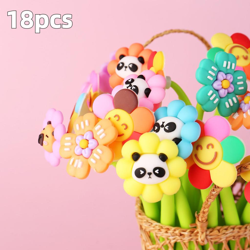 18pcs colorful flower shake pen,soft and bendable medium pen with 0.5mm black ink for smooth writing,office supplies,durable pen