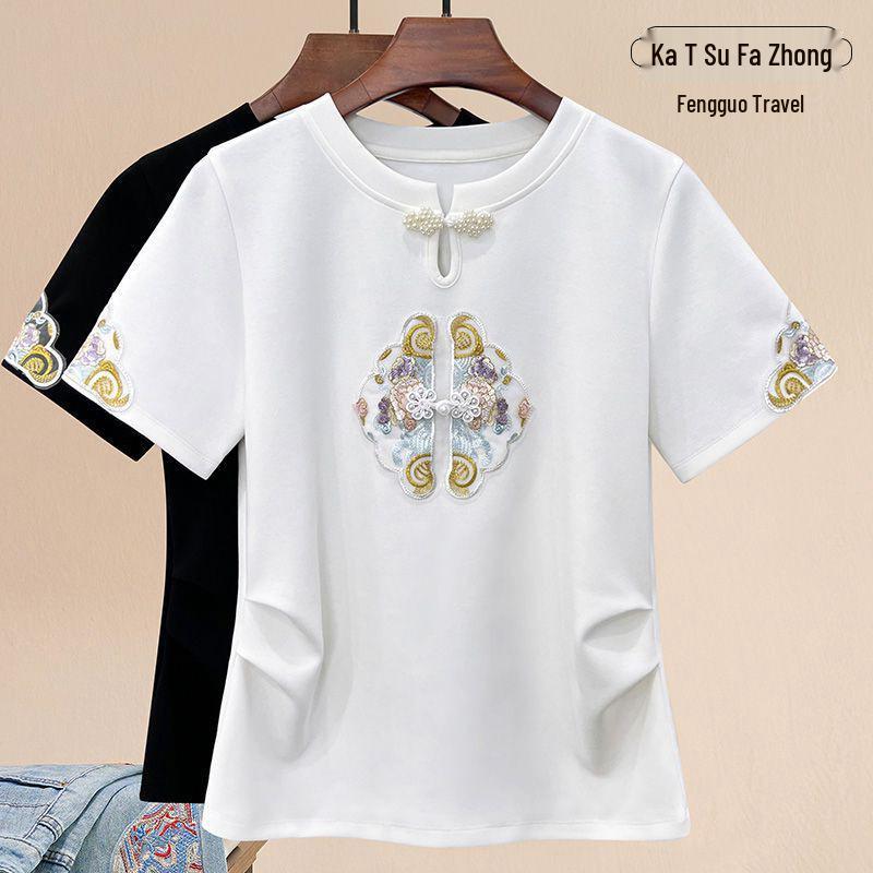 2024 Women's Short Sleeve Slimming Embroidered Chinese-Style Top