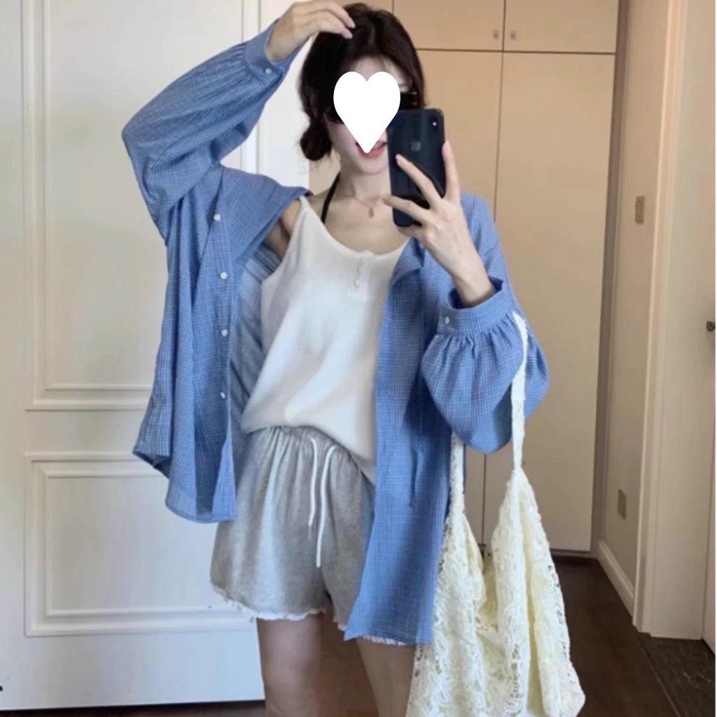 Korean Retro Striped Women's Blue Sun Protection Hooded Shirt Jacket for Summer 2025