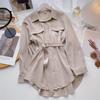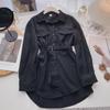 Women's Winter Mid-Length Korean Design Tie-up Long-Sleeved Shirt