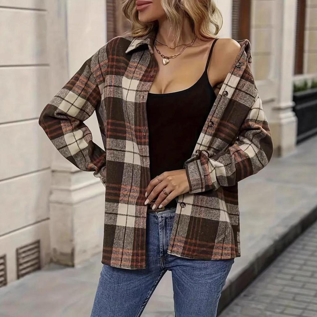 2025 European & American Women's Plaid Casual Long-Sleeve Shirt Jacket - Trendy & Loose Fit