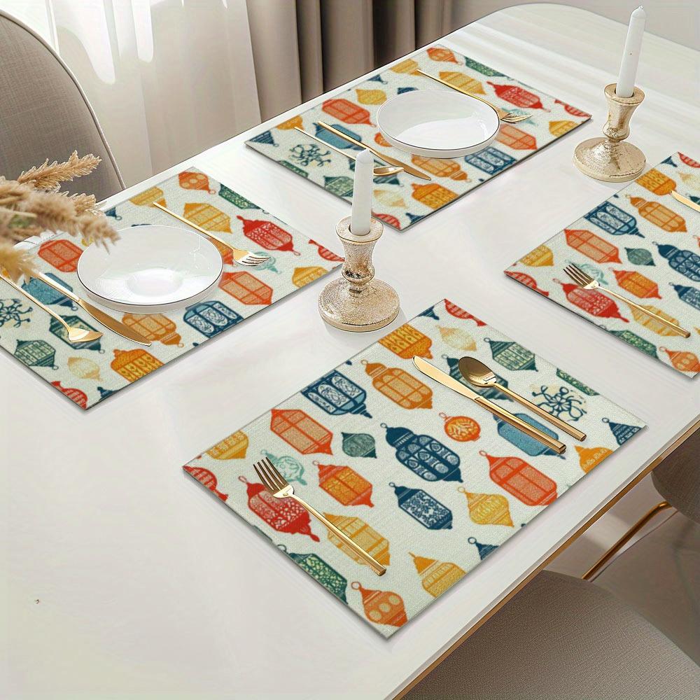 4pcs Ramadan Lantern Print Placemats - Rectangular Table Mats for Ramadan & Eid Home Decor