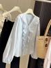 Women's Spring 2026 Ruffle V-Neck Shirt - Fashionable Age-Reducing Slimming Long Sleeve Top