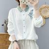 Retro Artistic Embroidered Collar Double Layer Cotton Long Sleeve Women's Shirt