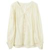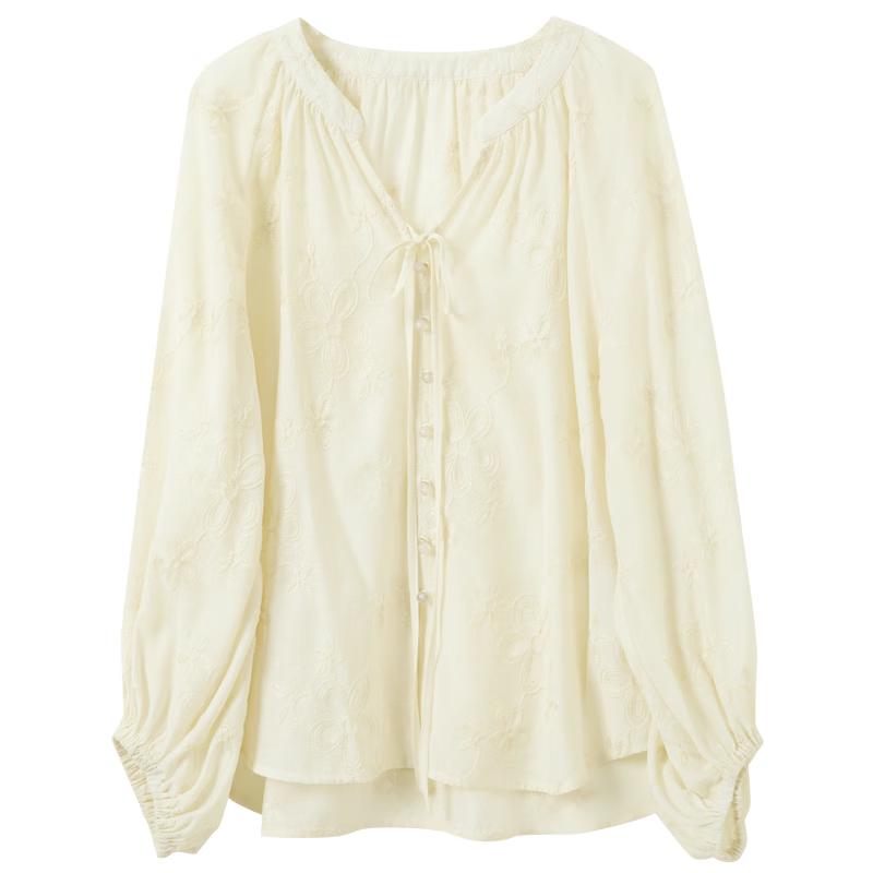 Sancai V-Neck Embroidered Lantern Sleeve Blouse