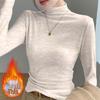 Women's Soft & Fluffy Cashmere Long-Sleeve Base Shirt with Half-High Collar for Spring, Autumn & Winter - Warm Fleece Inner Wear.