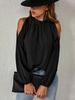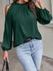 Elevate your seasonal wardrobe with this elegant women's off-shoulder top, perfect for the European autumn and winter months. Crafted from luxurious chiffon, this top offers a comfortable and stylish fit. Its solid color design is enhanced by chic ruffles and a sophisticated half-high collar, creating a timeless look. The long sleeves add an extra touch of grace, making it an ideal choice for both casual outings and special occasions.