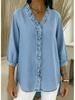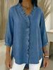 Embrace the essence of spring with this stylish women's casual shirt, crafted from a high-quality denim material. Featuring a sleek solid pattern, this V-neck shirt combines comfort with a touch of elegance. The faux denim design adds a contemporary twist to your wardrobe, while the ruffle detailing enhances its feminine appeal. Ideal for both relaxed and semi-formal occasions, this shirt is a versatile addition to any fashion-forward collection.