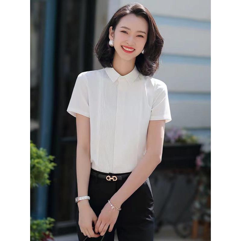 Elevate your summer wardrobe with this elegant short sleeve chiffon shirt designed for professional women. Crafted from high-quality polyester, this shirt offers a comfortable and breezy feel, perfect for warm weather. It features a solid pattern and a loose fit that ensures ease of movement while maintaining a sophisticated appearance. The tailor neckline adds a touch of classic style, complemented by unique patchwork and quilted decorations for a chic, modern twist. Ideal for both office settings and formal summer events, this shirt effortlessly combines style and practicality.