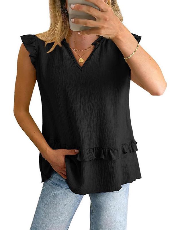 2026 Summer European & American Women's Solid Color Ruffled V-Neck Vest