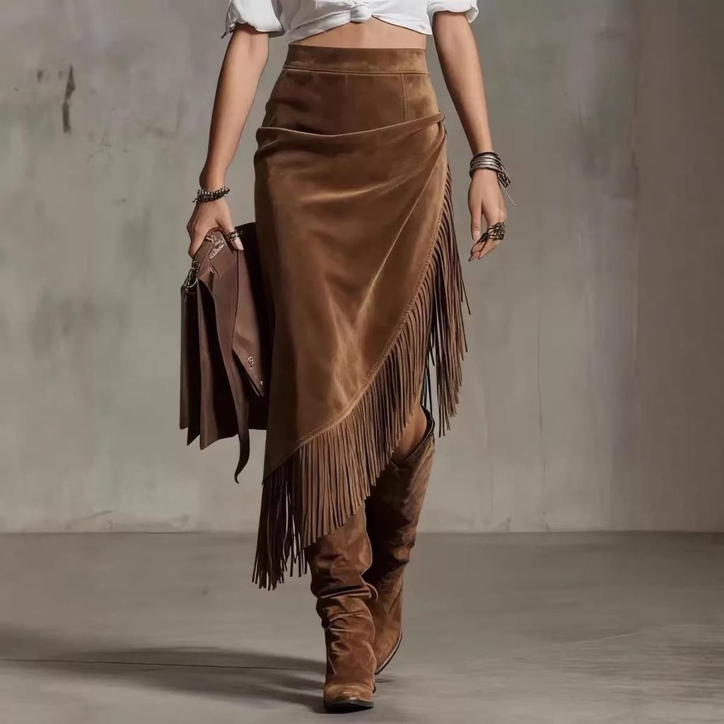 Unleash your inner fashionista with this chic Western European-inspired suede skirt. Crafted from high-quality polyester material, the skirt boasts a solid color and an eye-catching irregular design that adds a modern twist to a classic style. Its soft texture and perfect fit make it a versatile piece that effortlessly combines comfort and elegance, ideal for any occasion. Embrace the 2026 style and elevate your wardrobe with this unique and sophisticated skirt, a must-have for any trendsetter.