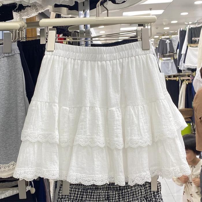 2025 Summer Women's High-Waist Slimming A-Line Mini Skirt: White Lace Layered Ballet Style