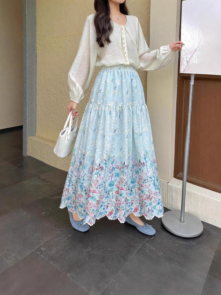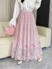 High-Waisted Floral Embroidery A-line Mid-Length Skirt