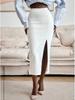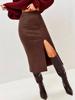 Introducing a stylish and sophisticated addition to your wardrobe, the High-Waist Slit Skirt offers an elegant, mid-length silhouette perfect for both spring and autumn seasons. Fashioned from premium polyester material with a luxurious suede finish, this skirt features a solid pattern that complements any outfit. The hip-hugging design is enhanced by unique patchwork and quilted decorations, adding a touch of modern flair. Ideal for chic daytime outings or upscale evening events, this versatile piece effortlessly combines comfort with contemporary style.