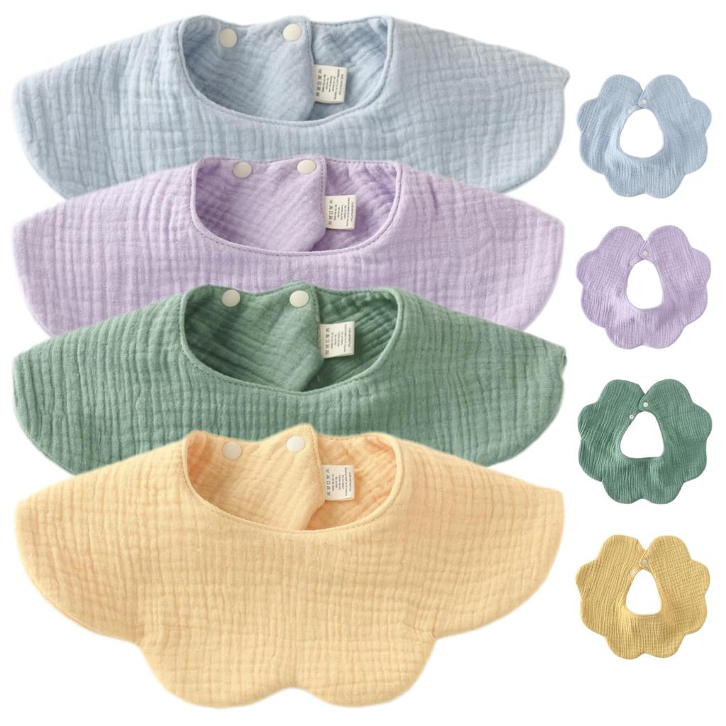GoUseGo Dětská sada Lístek Pevná Přírodní Dětská Dárek na Baby Shower Bryndáky, Vodotěsné, 4, 6vrstvá gáza, Velké, 360° Bryndáky, Barva, 100% Bavlna, Barva,