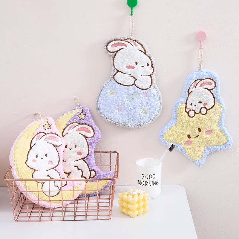 Star Moon Rabbit Coral Fleece Hand Towel Children's Hanging Cute Absorbing Water Without Hair Lanyoning Hand Towel Lanyard Kitchen Towel