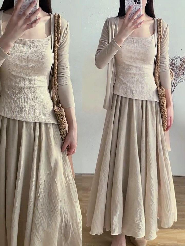 Luxurious Retro Ice Silk Cotton Linen Midi Skirt for Women: Spring/Summer 2026 Slimming High-Low Floor-Length Dress