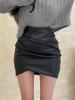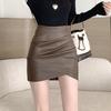 2025 Autumn Black PU Leather High-Waisted Bodycon Skirt for Petite Women