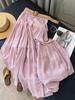 2026 Spring Women's High Waist A-line Pleated Skirt, Gentle Ice Silk Cotton Linen, Fat-Concealing Cake Design