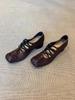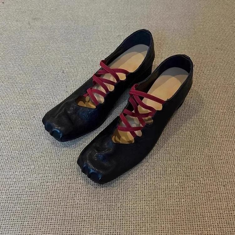 Retro Leather Version Cross Strap Ballet Flats Women's Folded Genuine Leather Square Head Pig Nose Shallow Mouth Shoes