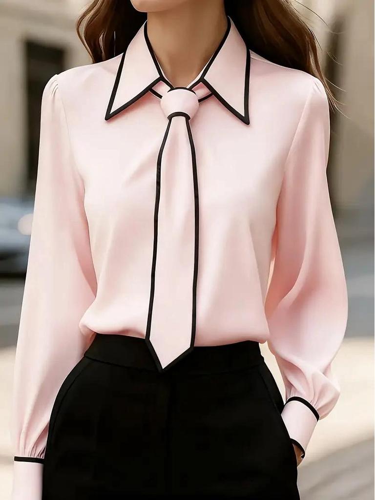 Elegant 2025 Women's Long Sleeve Fashion Blouse with Bow Tie