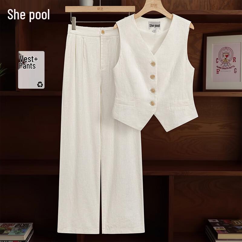 Women's Ramie Wide-Leg Pants & Vest Two-Piece Set