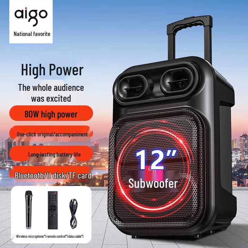Aigo S56 12-inch Portable Bluetooth Trolley Speaker with Microphone CN plug (adapter included)