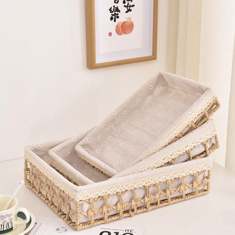 Bohemia Tabletop Fruit Container Hollow Out Straw Storage Basket Bin Home Decor