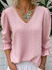 2026 Spring Women's V-neck Hollow Casual Mid-sleeve Top Shirt