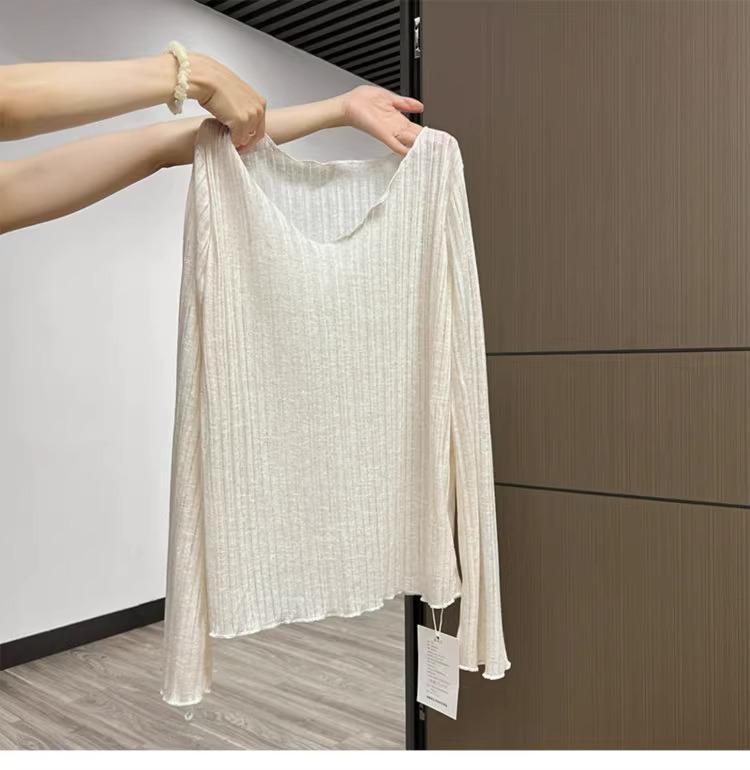 Women's Korean Style White V-Neck T-Shirt with Ruffled Edge - Relaxed Fit, Sheer, Sun Protection, Perfect for Layering in Spring/Summer