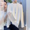 Elegant French Style Patchwork Lace Trim Thermal Top - Round Neck, Long Sleeve (2025 Autumn/Winter Collection)