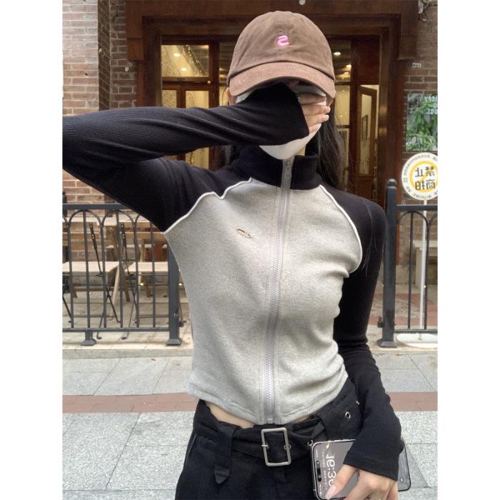 Embrace the charm of autumn with this stylish and chic long sleeve top. Crafted from high-quality polyester, this slim-fit top features a sophisticated stand collar and a unique color block patchwork design. Its solid pattern adds a touch of elegance, making it perfect for both casual outings and more formal occasions. Stay trendy and comfortable with this must-have addition to your autumn wardrobe.