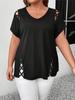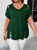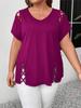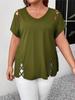 2026 Plus Size V-Neck Cross Strap Hollow Short Sleeve Women's T-shirt