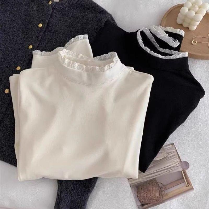 Stay warm and stylish this autumn and winter with this elegantly designed women's base layer top. Crafted from high-quality polyester, the solid-patterned top ensures comfort and durability. It features long sleeves and a slimming fit that flatters your silhouette. The top is adorned with beautiful lace patchwork for a touch of femininity and sophistication. The soft derong fur material provides an extra layer of warmth, making it a perfect choice for cooler seasons.