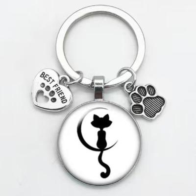 Cartoon Glass Cabochon Key Ring Love Cat Pet Footprints Key Holder Bag Charms Car Key Chain Kids