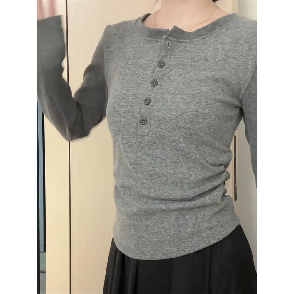 American Hot Girl Buttoned Fleece Long Sleeve Round Neck Slim Fit Women's Winter Top