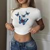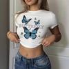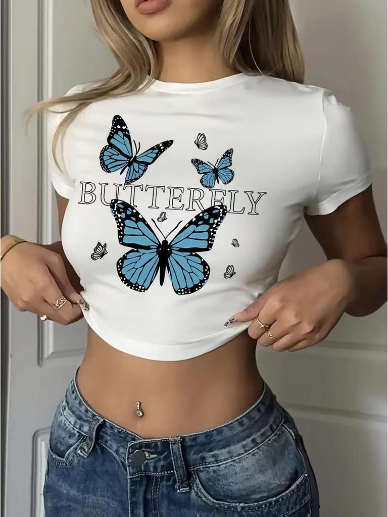 Elevate your casual wardrobe with this stylish women's cropped T-shirt, featuring a charming butterfly print. Crafted from soft and durable polyester material, it promises comfort and longevity. The T-shirt is designed with short sleeves and a classic round neckline, perfect for a laid-back yet trendy look. The eye-catching pattern adds a touch of sophistication, making it a versatile addition to any outfit.