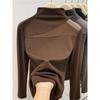 Plus Size Velvet Mesh Patchwork Stand Collar Long Sleeve Top for Women - Autumn/Winter Slimming Base Layer.