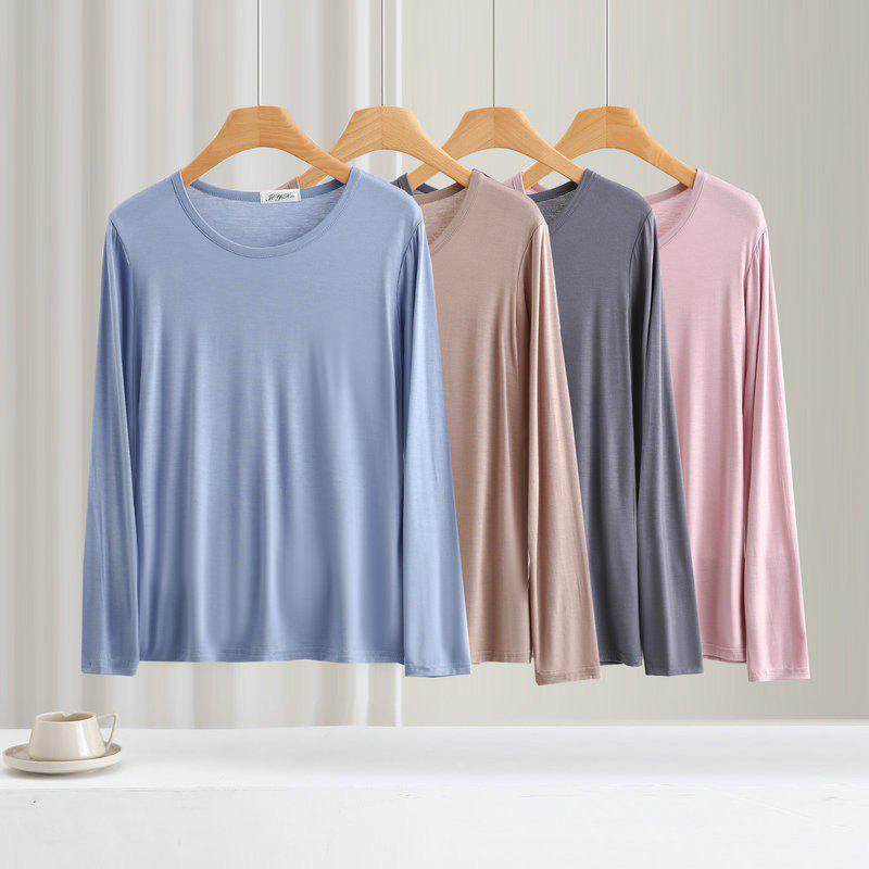 Embrace the essence of spring and summer with this elegant women's T-shirt. Crafted from high-quality modal material, it offers a soft, comfortable fit that feels gentle against the skin. The solid pattern and round neckline present a classic look, while the thin long sleeves offer a touch of versatility, making it ideal for layering or wearing on its own. Designed to be loose yet slimming, this top enhances your silhouette without compromising on comfort. Available in plus sizes, it’s a perfect outerwear piece that complements any wardrobe.