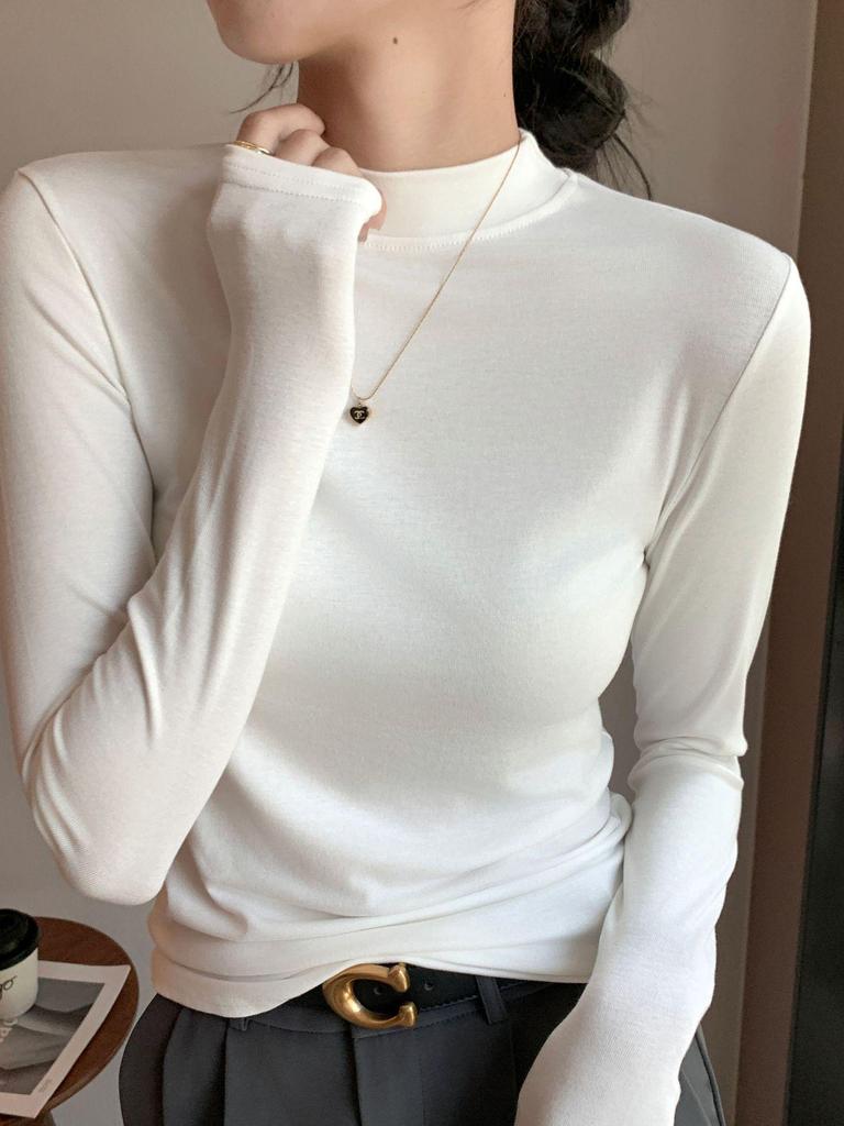Discover the elegance and comfort of the Women's H535 Modal Half-High Collar Long-Sleeve T-Shirt - a perfect addition to your autumn wardrobe. Crafted from soft modal material, this t-shirt offers a luxurious feel against the skin. The solid pattern lends a versatile and timeless appeal, making it easy to pair with various outfits. Featuring a unique half-high stand collar combined with a round neckline, this long-sleeve shirt delivers a sophisticated touch to any ensemble, ideal for both casual outings and more polished occasions. Embrace the changing seasons in style and comfort with this chic and adaptable piece.