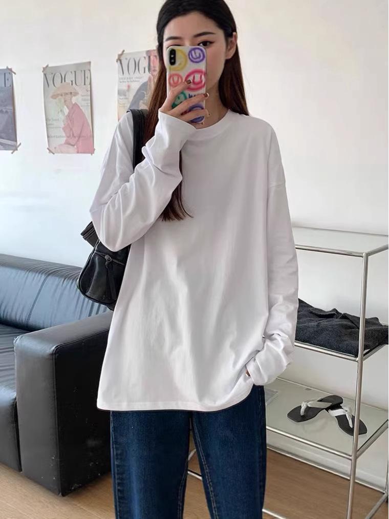 This stylish plus size T-shirt is perfect for spring and autumn, featuring a long sleeve design for added comfort and warmth. Made from a blend of polyester with a luxurious peach skin milk silk finish, it offers a soft and smooth feel against the skin. The solid pattern and classic round neckline make it a versatile addition to any wardrobe, ideal for pairing with your favorite jeans or layering under a jacket for a chic, effortless look.
